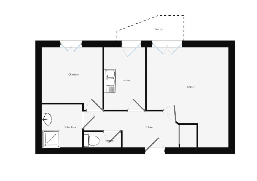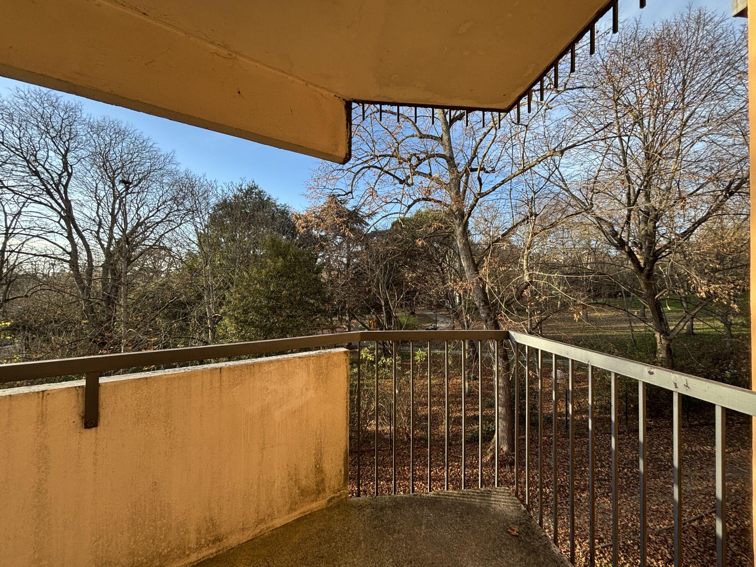 L’entrée de l’appartement, équipée d’un placard, mène à un séjour lumineux ouvert sur un balcon sans vis-à-vis offrant une vue dégagée sur le Parc de Montaudran. La cuisine indépendante, à aménager selon vos besoins, peut aussi être ouverte pour créer un espace de vie plus moderne.