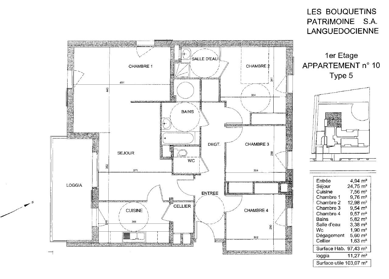 Situé à mi-chemin entre les métros 3 Cocus et Borderouge, 160 rue Edmond Rostand exactement, ce vaste T4 de 97m² au 1er étage avec ascenseur se compose d’un séjour double pouvant éventuellement accueil une 4ème chambre, 1 cuisine séparée (à équiper) ouvrable sur séjour, terrasse abritée de 11m², salle de bain, 3 chambres dont 1 avec salle d’eau, wc séparé, Box privatif dans le parking souterrain.